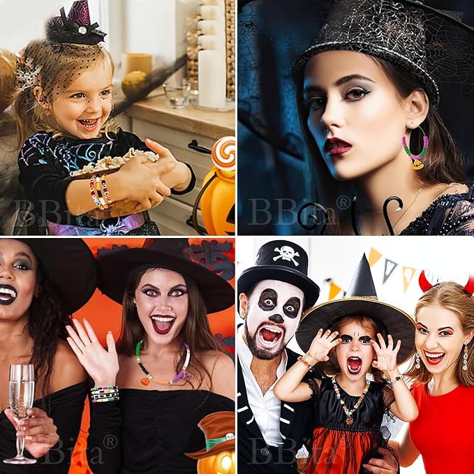 • [ Large Quantity ]: Total about 2088pcs, include halloween polymer clay beads ,5 colors flat clay beads,5 colors pearl beads,white letter beads, black letter beads,gold B&O letter beads,6 Halloween metal pendants, in 3 colors large skull beads,1 color pumpkin bead,4 Earhook and Earring,1roll 5m elastic string.