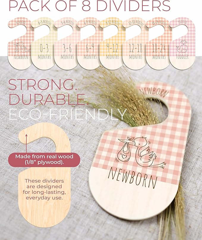 • A DELICATE TOUCH TO ANY BABY DECOR SETUP: 8 closet baby organizer variations of soft pink gingham patterns bring warmth and elegance to your nursery design. These baby closet dividers offer both style and structure, making them lovely baby nursery must-haves.
