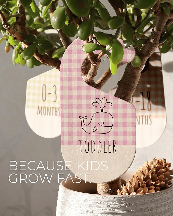• CLEAR DOUBLE-SIDED AGE LABELS FOR EASY ACCESS: Each of baby clothes dividers for the closet has bold, easy-to-read size markings on both sides for a quick reference โ€” a stylish blend of baby nursery decor and practical baby room essentials.