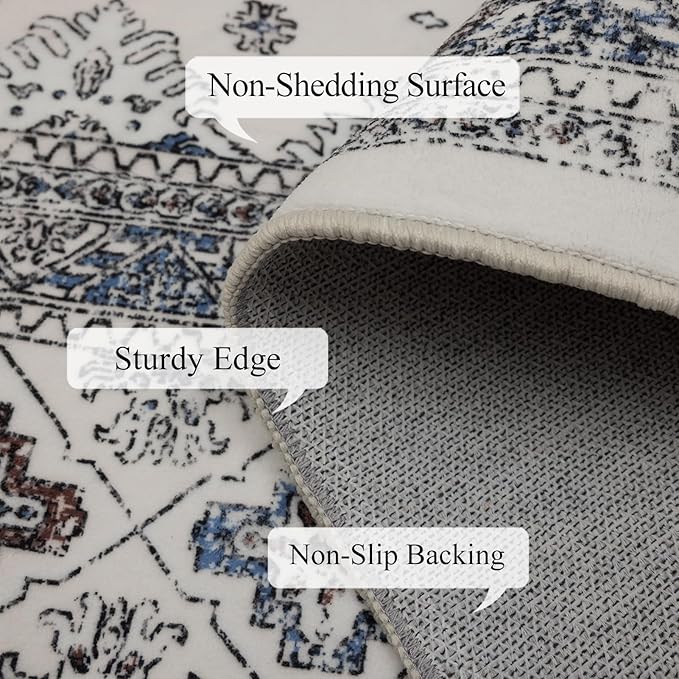 4x6 Washable Area Rug for Living Room, Carpet for Bedroom, Soft Faux Wool Retro Dining Room Rug, Non Slip&Non-Shedding Resistant Low Pile Vintage Print Rug for Home Office (White Cream/Gray)