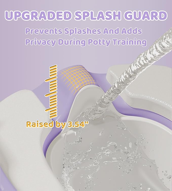• 【Splash Guard & Urinal Design for Boys】Includes an extended splash guard with a 2.8-inch deep arc recess to prevent spills, ideal for boys during potty training. The urinal-style front makes it easier to keep things tidy and mess-free, promoting better hygiene and easier cleanup.