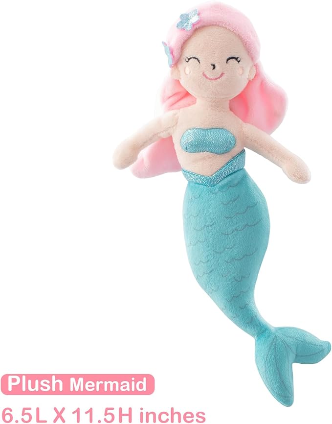 4 Piece Crib Bedding Set for Boys Girls, Infant Toddler Nursery Baby Bedding Sets Includes Cartoon Quilt, Fitted Crib Sheet, Crib Skirt and Plush Mermaid Toy