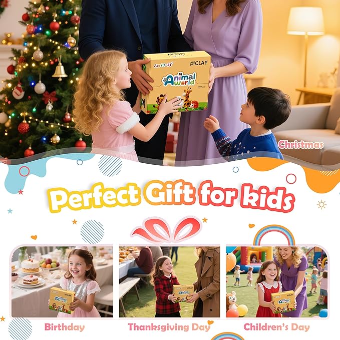 • Creative Fun & Kids Gift: This air dry clay kit features vibrant, kid-friendly packaging with playful animal designsโ€”Suitable for boys, girls, and teens. A thoughtful present blending artistic crafting, education, and family fun at birthdays, Christmas, parties, and seasonal celebrations!