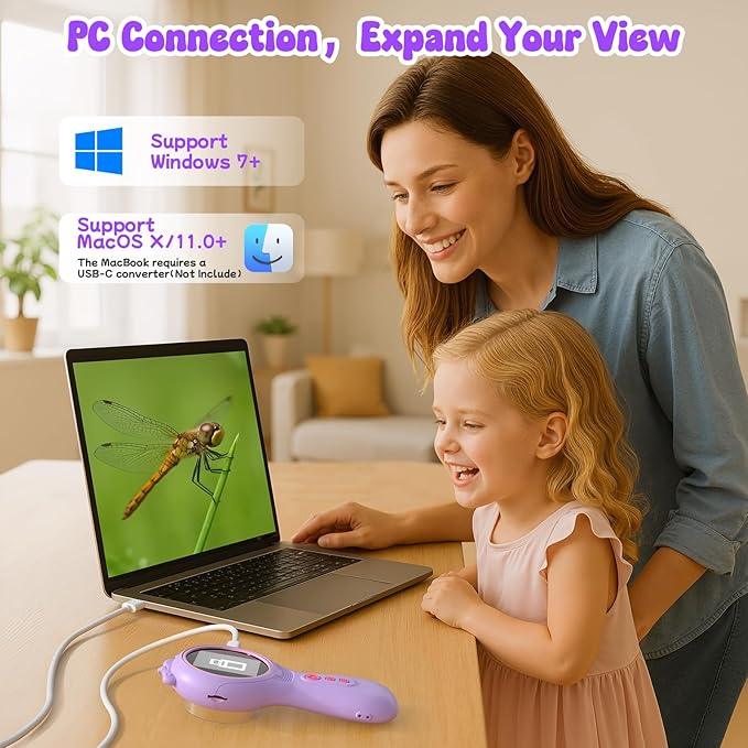 • 500W HD Clarity - See Tiny Worlds in Stunning Detail! Unlock crystal-clear exploration with 500W high-resolution imaging โ€“ far superior to other kids' microscopes! Our handheld microscopes instantly captures images of leaves, insects, or fabrics, eliminating frustrating manual adjustment. Combined with a vibrant 2"IPS screen and 3-level LED lighting, every texture on butterfly wings or mineral surfaces pops with true-to-life colors. Perfect for kids 4-8 years old to use.