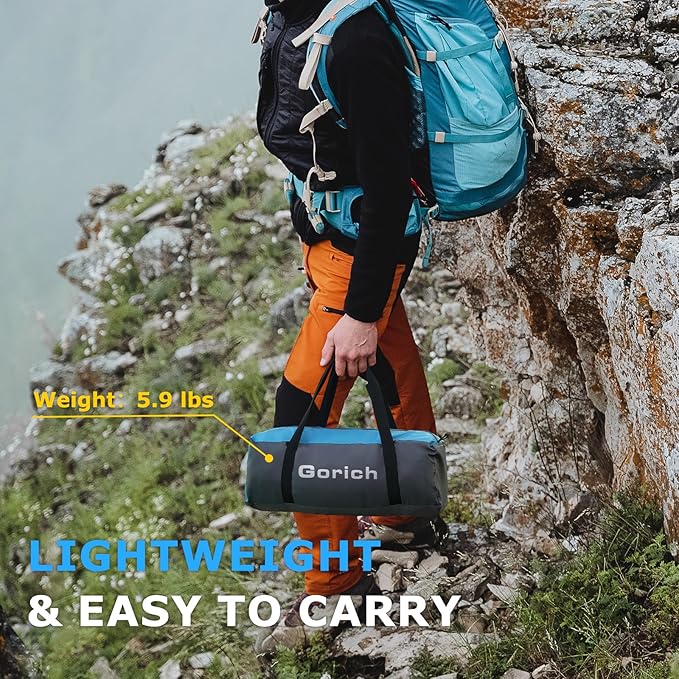 • Stable, Windproof & Water-Resistant: Gorich sun cover tent features reinforced 16mm steel poles and durable ropes to hold up the canopy, ensuring stability while preventing deformation in breezy conditions. The 150D Oxford cloth base offers strong water resistance, keeping the interior dry in damp environments like beaches, lakesides, or campsites