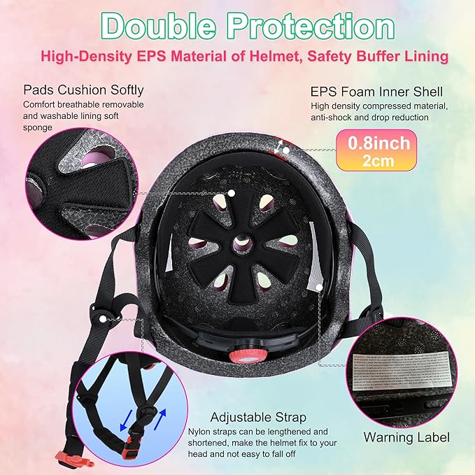 • 【Perfect Gift Choice for Kids】 Our boys girls helmet is lightweight (only 12.3oz), and kids have no burden wearing our bike helmet. The toddler bike helmet provides protection for many outdoor activities, such as bicycling, roller skating, skateboarding, scooter, street dancing, pedaling, etc. It is a good choice as a gift for Children's Day, Christmas, Halloween, Thanksgiving, Birthday and other holidays.