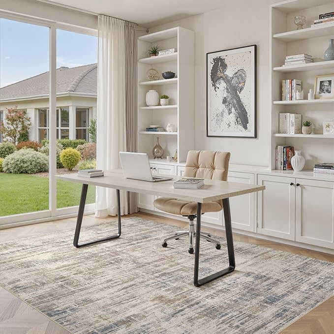 • Neutral Abstract Style: Elegant neutral design lets this rug integrate seamlessly into any space. It enhances room ambiance and adds refined elegance to your home. Perfect for living rooms, bedrooms, dining rooms, studies, offices, playrooms and nurseries