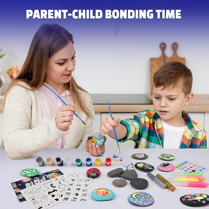 • Unleash & Spark Creative Expression - This arts and crafts kit for kids ages 6–12 is designed to ignite imagination. With colorful paints and fun tools, children can decorate rocks and create glowing masterpieces that are as unique as they are. It's a perfect blend of creativity, learning, and fun!