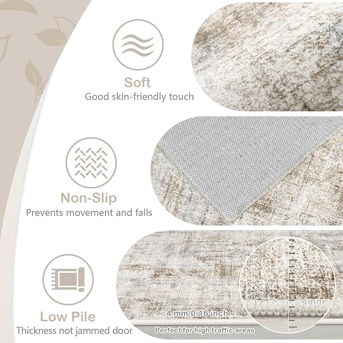 • Anti-Stain Low Pile Rug: Our washable rugs surface pile are short and dense, can block dust and hair embedded, spilled drinks coffee and other liquids will not penetrate into the neutral rug inside; Our 9'x12' large rug is moderately thick and won't snag on doors, which not only keeps indoor rugs clean, but also adds convenience for high traffic areas.
