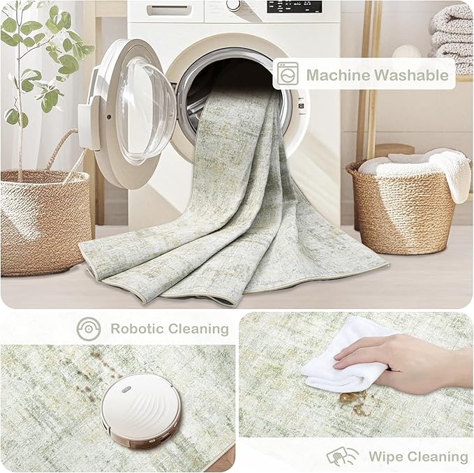 • Easy To Clean And Care: The low-pile design of the washable rug 5x7 makes it easy to find and clean stains in time, so you can just wipe and sweep the carpet on a daily basis, and the bedroom rug can also be put in the washing machine for a quick clean, it is easy to dry quickly, saving your time.
