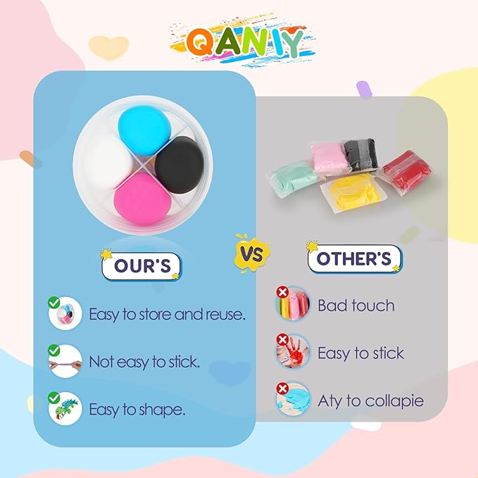 • 【Safe and High-Quality Materials】: Our air-dry clay is made of non-toxic, eco-friendly and high-quality materials, does not contain any allergens, and we strictly adhere to ASTM D-4236 and CE (EN-71) standards to ensure your children's safety while exploring creativity!