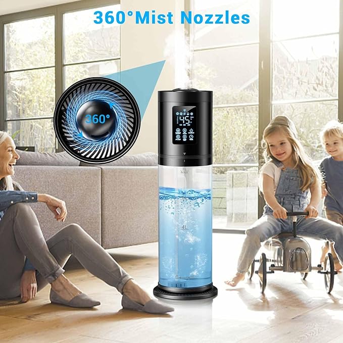 • 【2.1 Gallon Capacity & Powerful Cool Mist】 This high-performance cool mist humidifier delivers long-lasting moisture for large rooms, featuring a 2.1 gallon water tank and a powerful ultrasonic mist system. With 4 mist levels and a 360° adjustable nozzle, it ensures even humidity distribution throughout your space while operating quietly for a peaceful environment