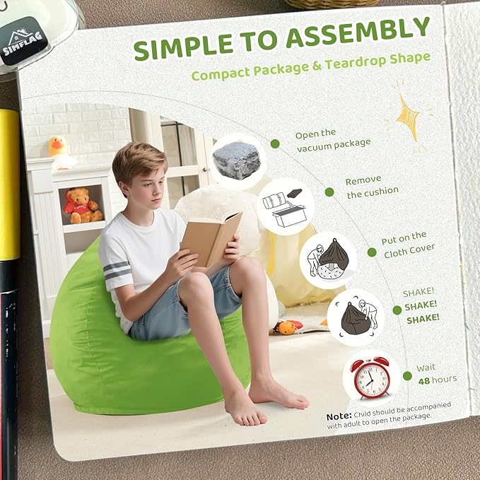 • WIDELY USE FURNITURE: Bean bag chairs is ideal for watching movies, studying, reading, gaming, napping, or just chilling, and is the perfect addition to every space, playroom, kid's room, living room, office, or school dorm.