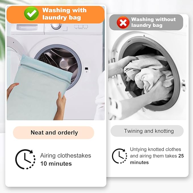 • 【Breathable Mesh, Special Zipper】Breathable mesh allows water to flow in and out smoothly, making it easy for the washer to deep clean clothes without wrinkling. The rust-resistant and durable zipper comes with a rubber band cover. You will say goodbye to zipper scratches on the washer and the opening of the laundry bag during the washing process.