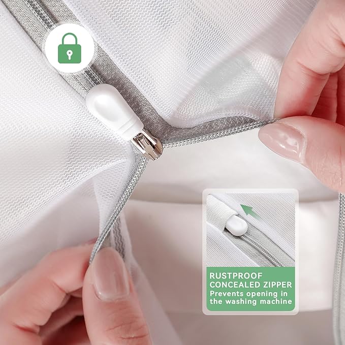• Convenient Zip Design: This delicate laundry bag with rustproof zip and protective cover. easy to use and sleek appearance, the unique design really brings convenience to storage and prevents items from falling. please do not put in too much laundry, keep the capacity around 2/3 for smoother washing.