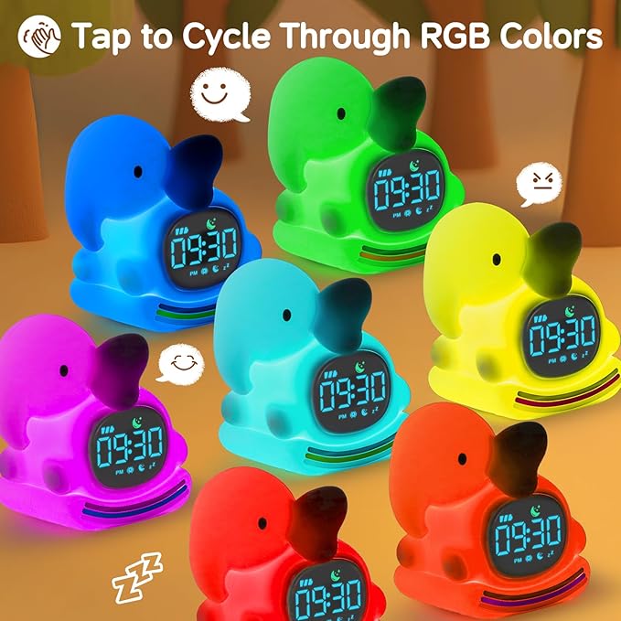 Alarm Clock for Kids with Night Light, Sleep Training Clock Time to Wake Clock, Rechargeable Silicone Light for Bedroom, Perfect Sleep Companion for Boys Girls,Blue Elephant