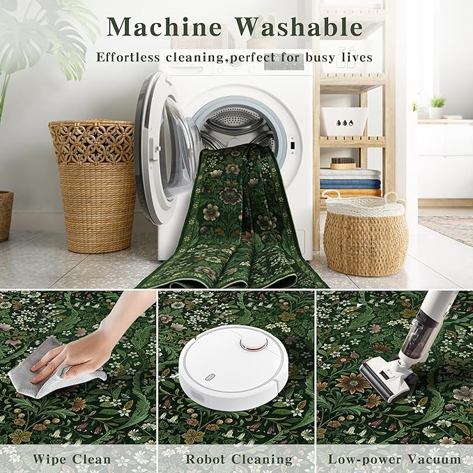 • Machine Washable Area Rug: Maintain this room rug effortlessly! Dust and dirt can be easily removed with a vacuum, while spills can be wiped up immediately with a sponge or cloth. For deeper cleaning, toss the rug in the washing machine for a thorough refresh.