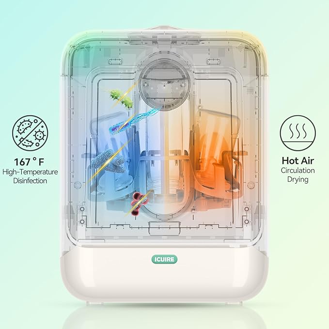 • Efficient high-temperature drying+interval disinfection: Keep bottles dry and long term interval disinfection in the bottle washer for up to 72 hours after washing, removing 99.9% airborne particles.