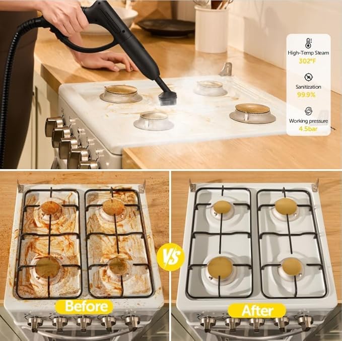 • Deep Steam Cleaning Without Harsh Chemicals:Delivers 302°F steam that penetrates grime and grease on hard surfaces, offering an effective clean without the need for chemical cleaners.