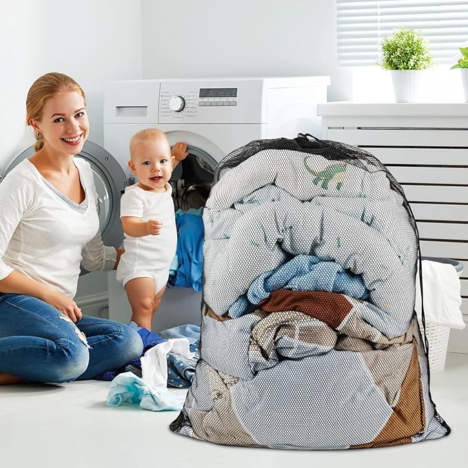 • 【Extra Large Mesh Laundry Bag for Camping and Travel】- Oversized 24" x 36" heavy-duty mesh bag designed to hold large loads of dirty clothes, sleeping bags, blankets, and gear. Perfect for camping trips, dorm rooms, and travel, offering ample space and easy storage.