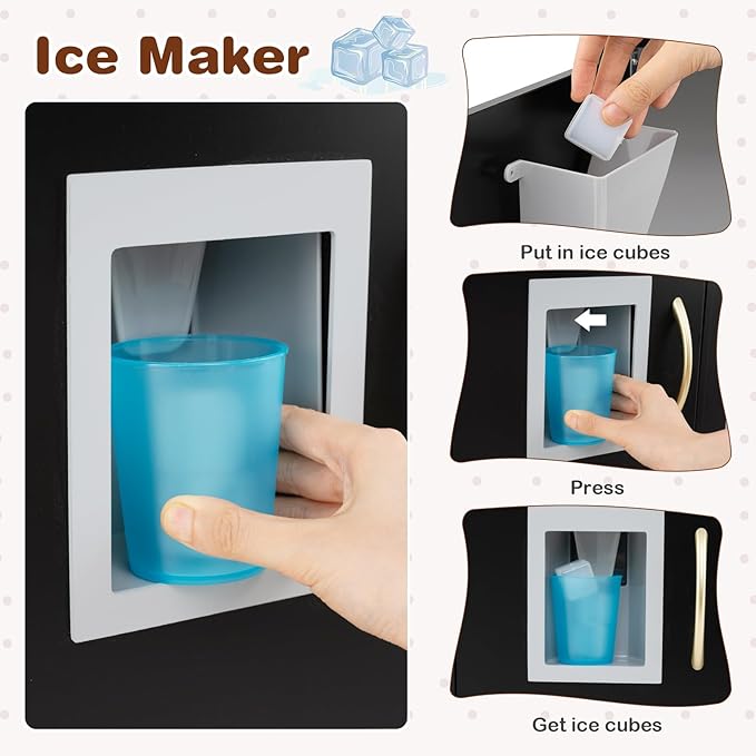• 【Realistic Role-Play Cooking Experience】The kitchen set for kids consists of microwave, telephone, 2 stoves, ice maker, fridge, dishwasher and play sink with rotary faucet and knobs. This toy kitchen set stimulates real kitchen scenes and provides kids with unlimited fun of pretend play. Moreover, the “click” sounds of the oven knob add more realistic cooking fun.