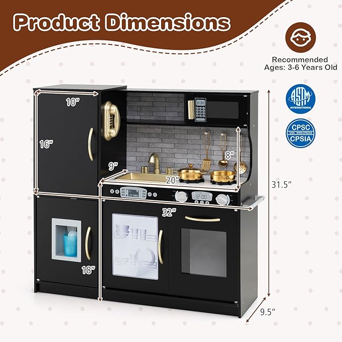 • 【Perfect Gift for Kids】Designed with a modern and stylish style, the pretend play kitchen is a great role play toy for children aged 3+ years old. The kid-friendly height makes kids enjoy hours of fun to develop hands-on ability, inspire creativity, improve social skills and enhance parent-child interaction.