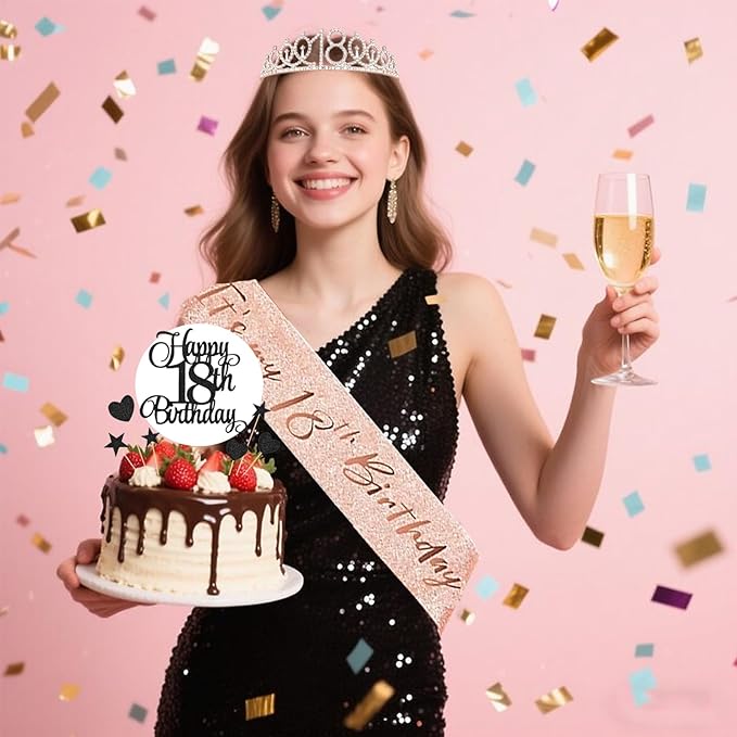 • 18th Rhinestone Crown & Sparkly Sash: The birthday sash, made of soft fabric via hot-press stamping glitter technique, features superior quality with non-shedding glitter and rose gold it's my 18 birthday letters. The crown, crafted from sturdy hard alloy with dazzling rhinestones, is meticulously designed for 18th birthday parties.