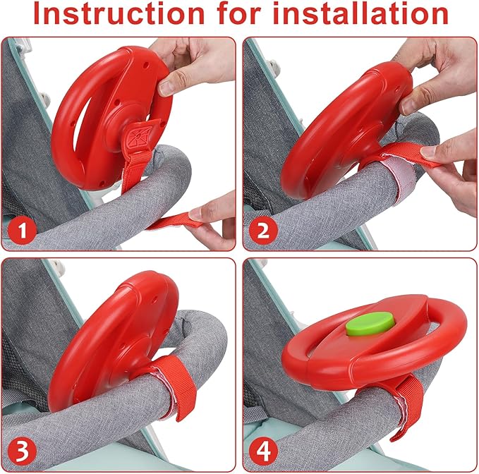 • Easy to Install: This steering wheel designed with a Velcro, remain stable and easily attached to stroller handlebar or any device with handles. Complete installation in a few seconds.