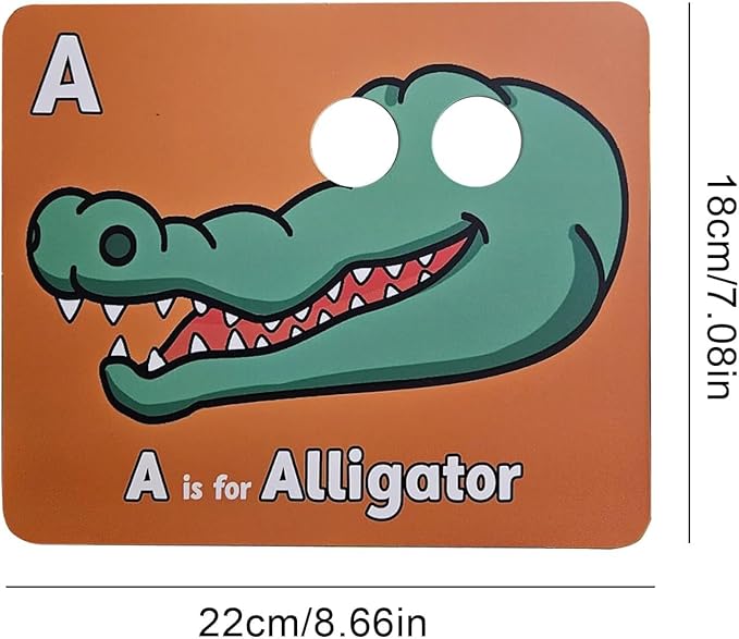 • [Learn Through Play]- Each animal mask alphabet cards is specially punched, and children can play by aligning their eyes with the round holes and transforming into 26 fun cartoon characters. In playing, children can interact with their partners and achieve immersive learning.