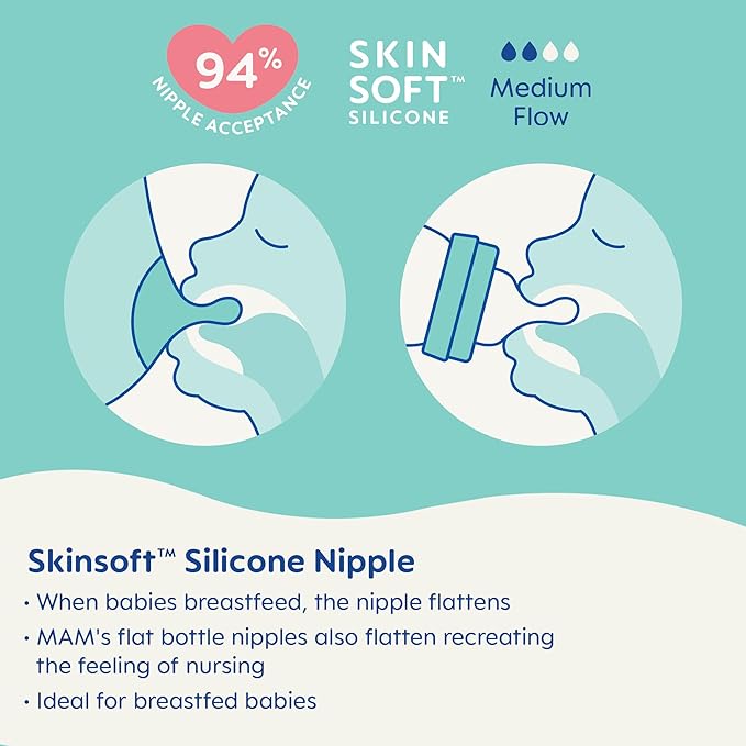 • 94% Nipple Acceptance: With a soft SkinSoft nipple, MAM baby bottles newborn are accepted by 94% of babies, making it easier to switch between breastfeeding and baby bottle feeding.
