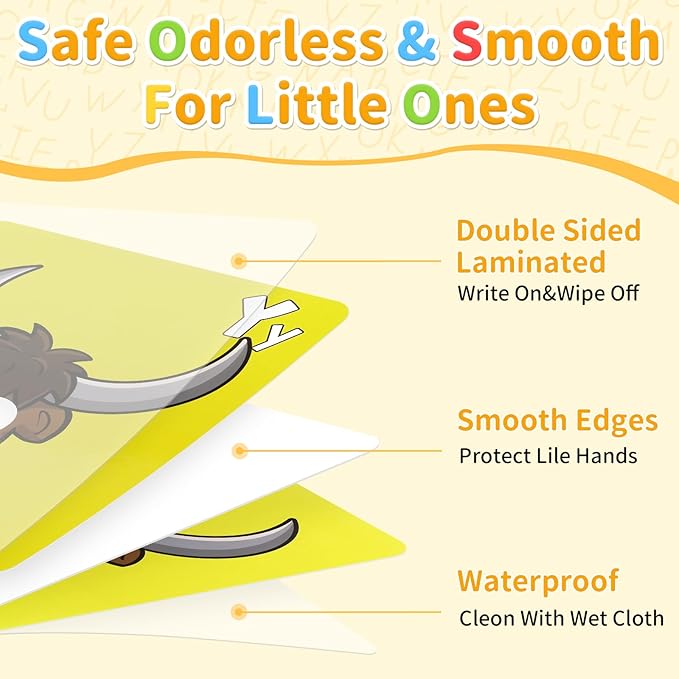 • 【Child-Safe Learning Tool】Features rounded corners, laminated, wipe-clean with smooth edges. The colorful alphabet flash mask card set is waterproof and safely designed for repeated classroom or home use.